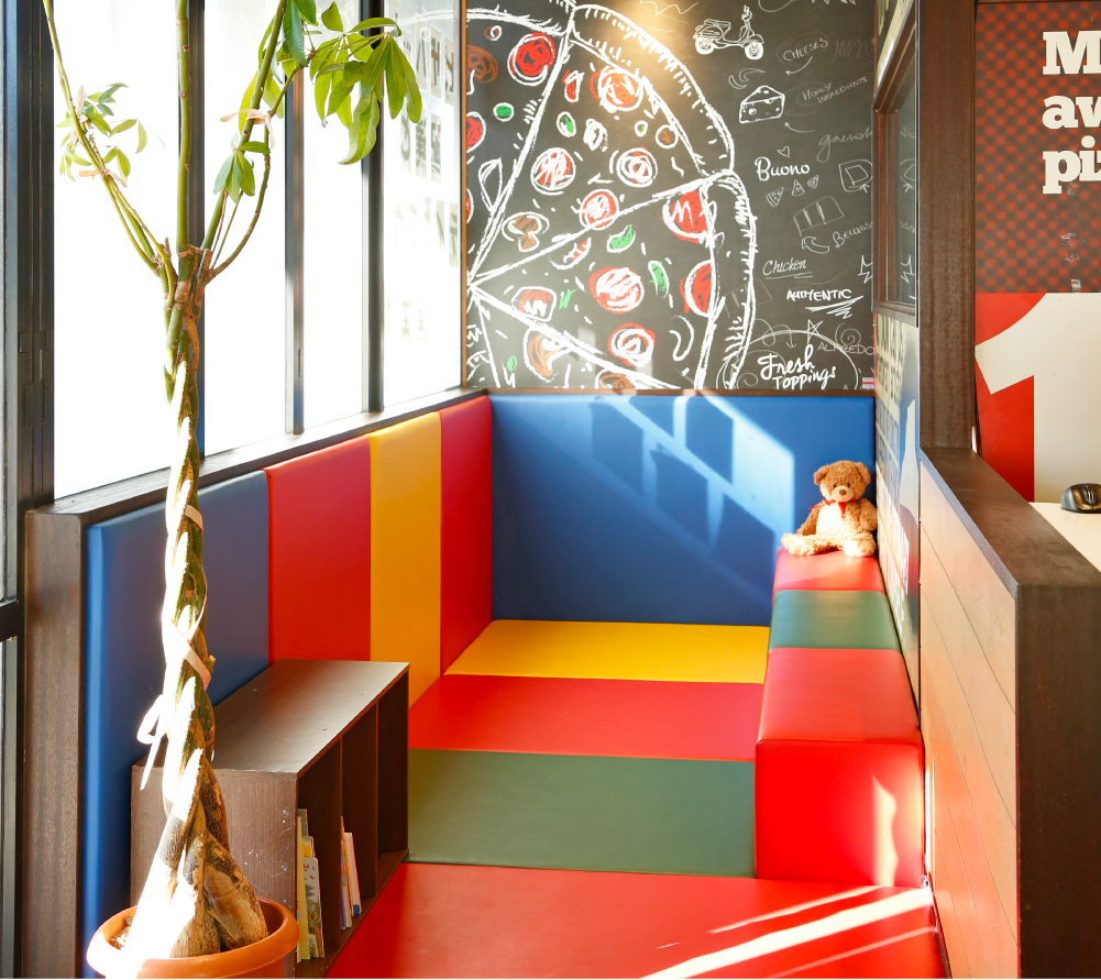 マルゲリータやテリマヨチキン、ポテマヨソーセージ、新・特うまプルコギなど人気4大メニューが味わえる一枚でシェアに最適です。キッズスペースでお子さまが遊んでいる間にママ友トークを弾ませるのも◎。