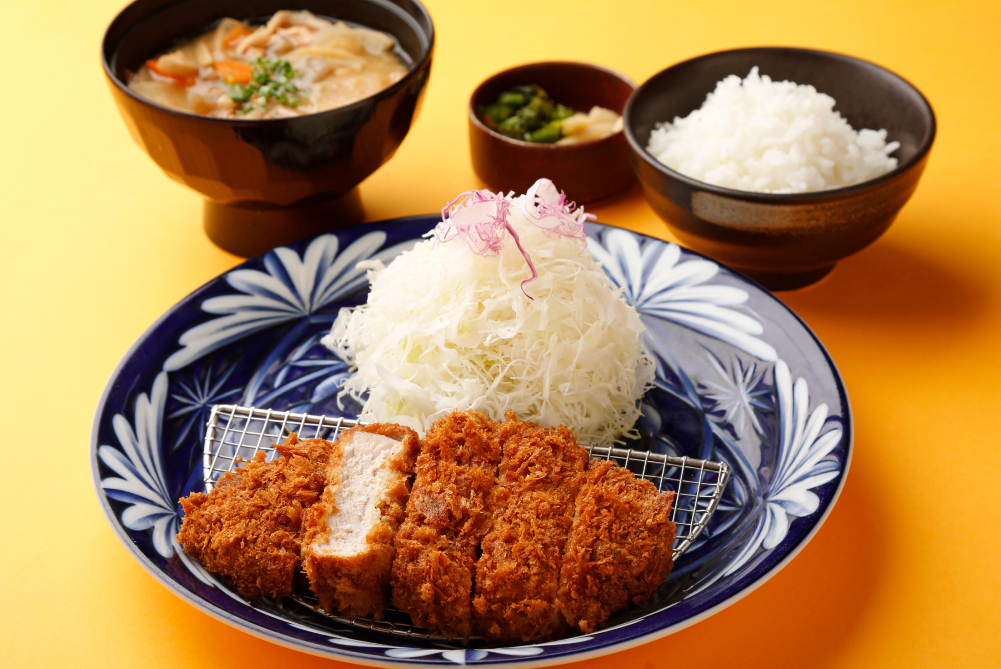 疲労回復の味方「ビタミンB1」が主役のとんかつ!ロース部位の中でも旨みと柔らかさに秀でた芯部分だけを厳選した『厚切りロースかつ定食』。その上、ベテラン職人の円熟ワザで<蒸し加熱>仕上げにこだわるなど、この厚みからは想像できない柔らかさが自慢。サックリとした粗びき特注パン粉に包まれるジューシーな豚肉を心ゆくまで!野菜たっぷりの豚汁付きです。