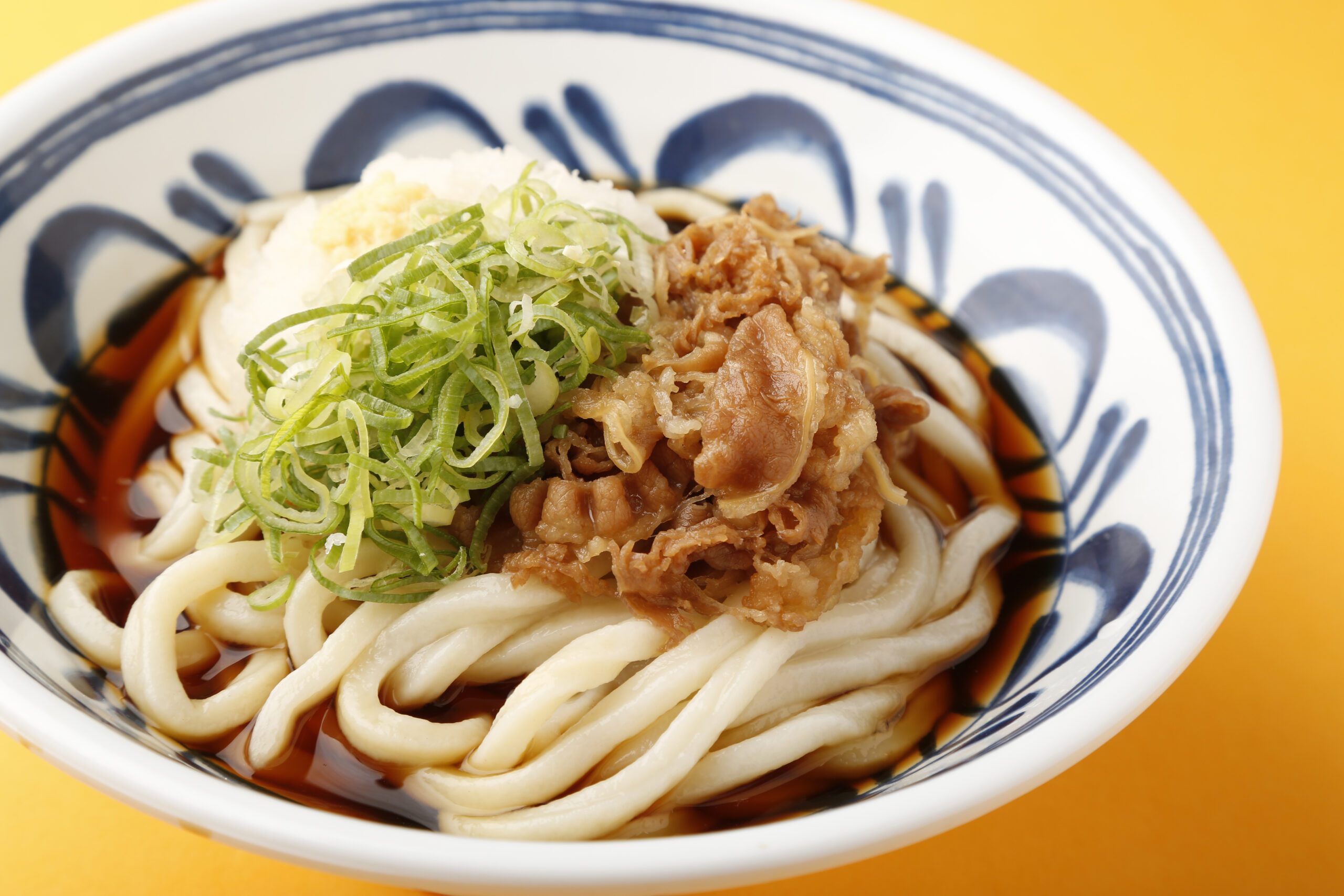 甘めに味付けた牛肉と大根おろしで、肉々しさとさっぱりが絶妙調和!おすすめは並の2倍量をドッカリと盛り込む「特大」で、独自製法の旨み深い出汁と厨房で毎朝製麺するモッチリ麺も相まって、腹ペコさんもペロリ完食なメニューです。