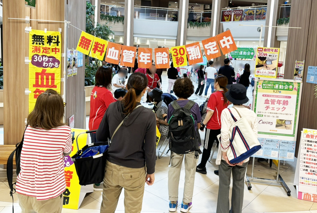 わずか30秒で自身の血管年齢が分かるとあって、昨年も大盛況だった「血管年齢チェック」のコーナー。今年は機材も運営スタッフも増やしてより多くのお客さまの「知りたい!」に応える展開となりました。当コーナーの運営が健康体操教室「カーブス」なので、運動習慣に関する質問も飛び交うなど健康が気になるみなさまの人気コーナーとなっていました。