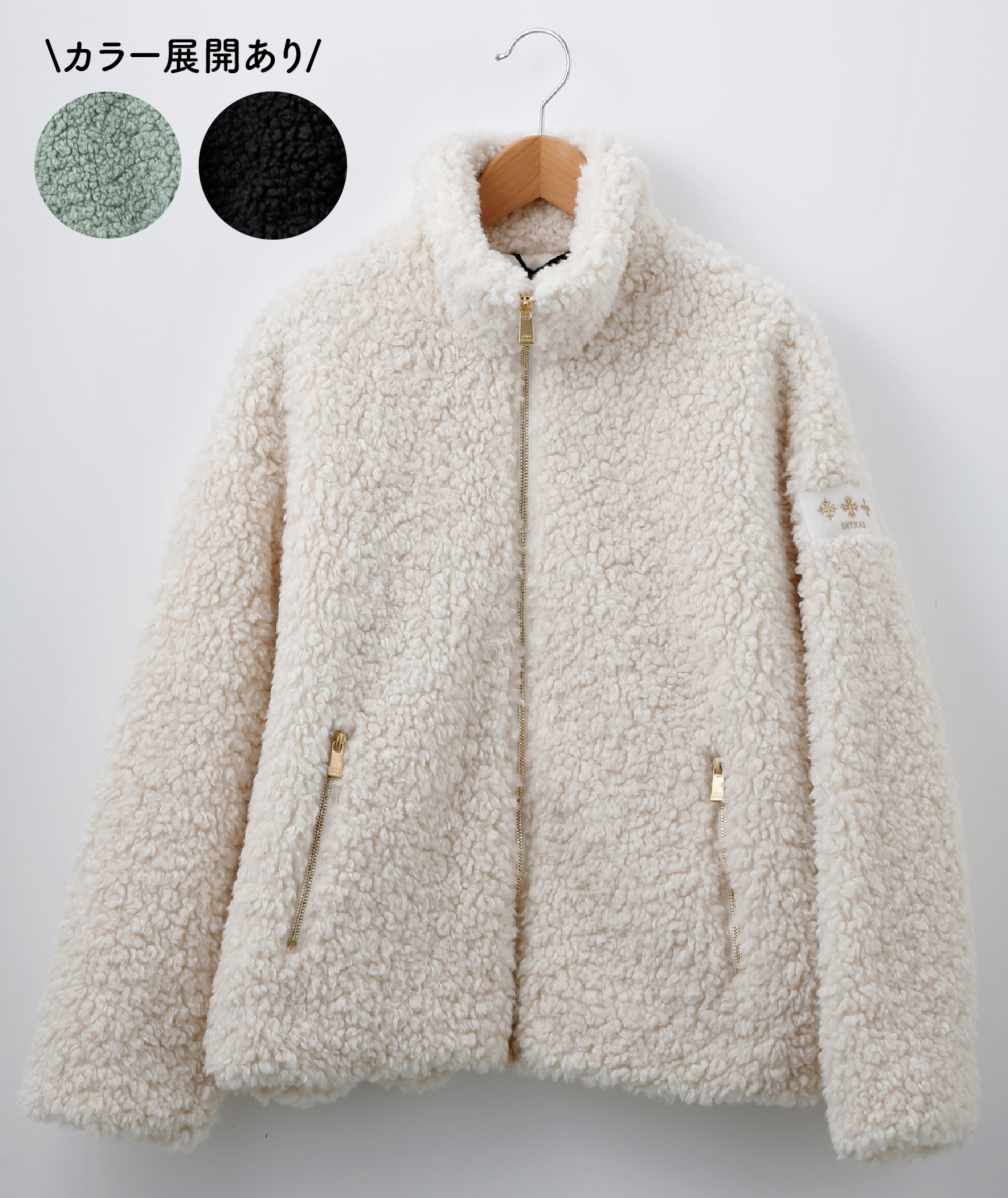 ウールのような質感のシープ調ボアブルゾン。表面を敢えて不均一に仕上げることで自然な風合いに仕上がっています。程よいボリュームの首周りから艶やかに降りるメタルファスナーもラグジュアリーな雰囲気に。遠目からでもハッと目を惹く質感が魅力的!