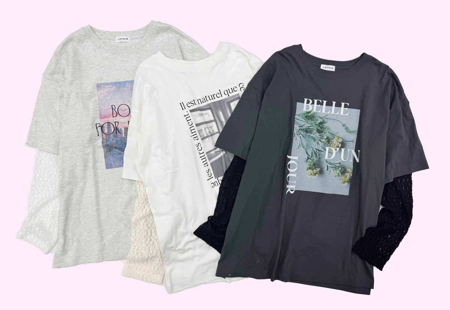 ●フォトプリント袖レイヤーT 各5,500円